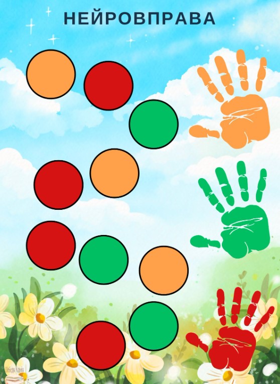 3. Виконання кольорових інструкцій із залученням правої та лівої руки. Завдання тренує переключення уваги і просторову орієнтацію.