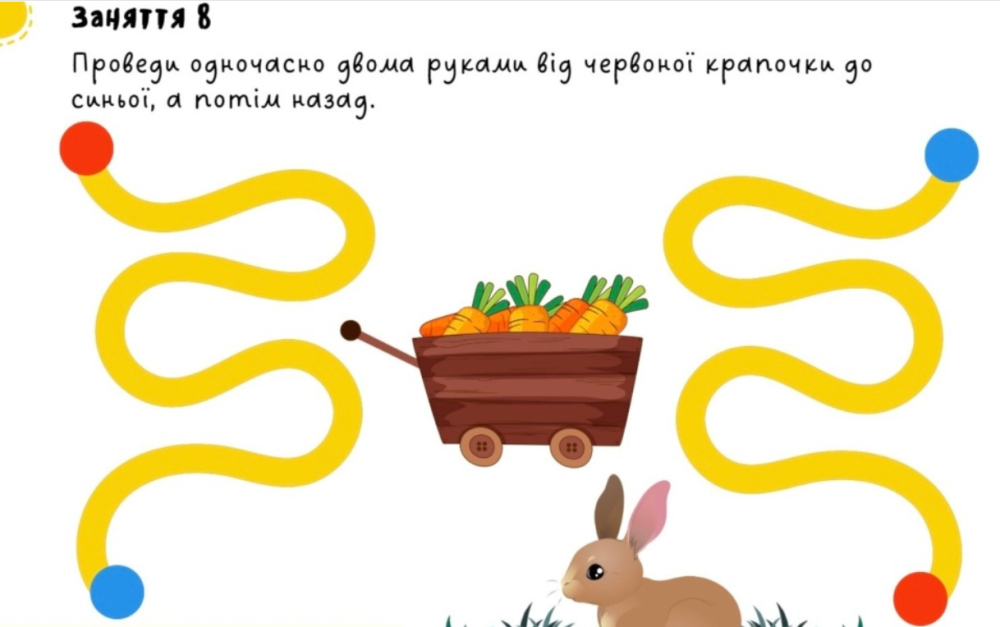 Нейровправи для дошкільнят ефективні тоді, коли поєднують рух, зоровий аналіз і виконання інструкції одночасно. Саме у віці від трьох до шести років активно формуються міжпівкульні зв’язки, від яких залежить увага, мовлення та координація. Нижче подані приклади вправ, які можна використовувати під час нейрокорекційних занять або вдома.