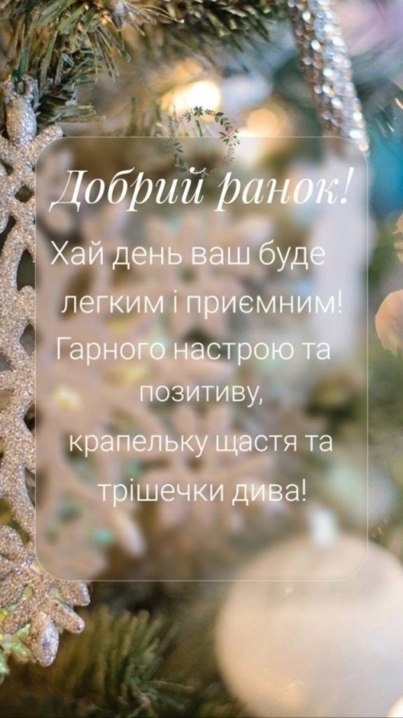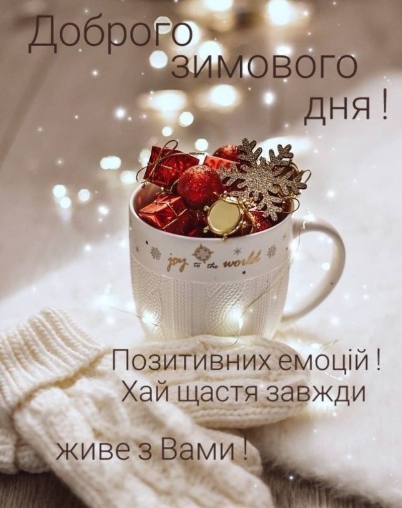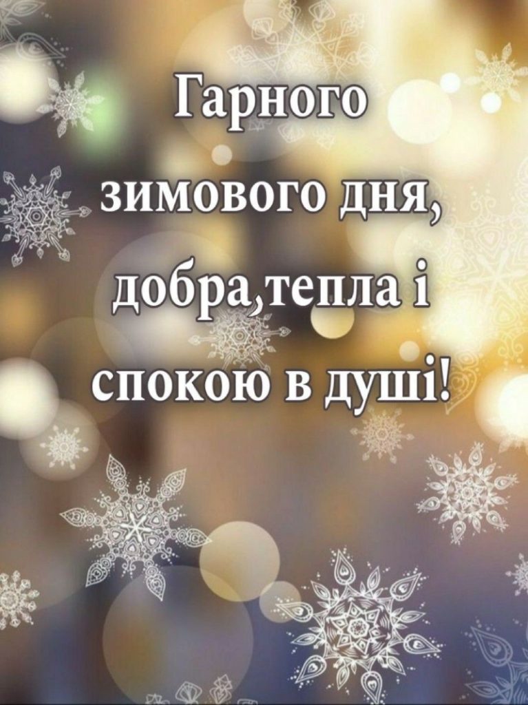 Хай цей зимовий день буде м’яким, добрим і дуже світлим. Нехай кожна подія складається легко, а серце відкривається для хороших емоцій. Нехай тепло оточення та прості радості супроводжують весь день.