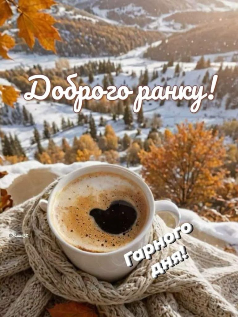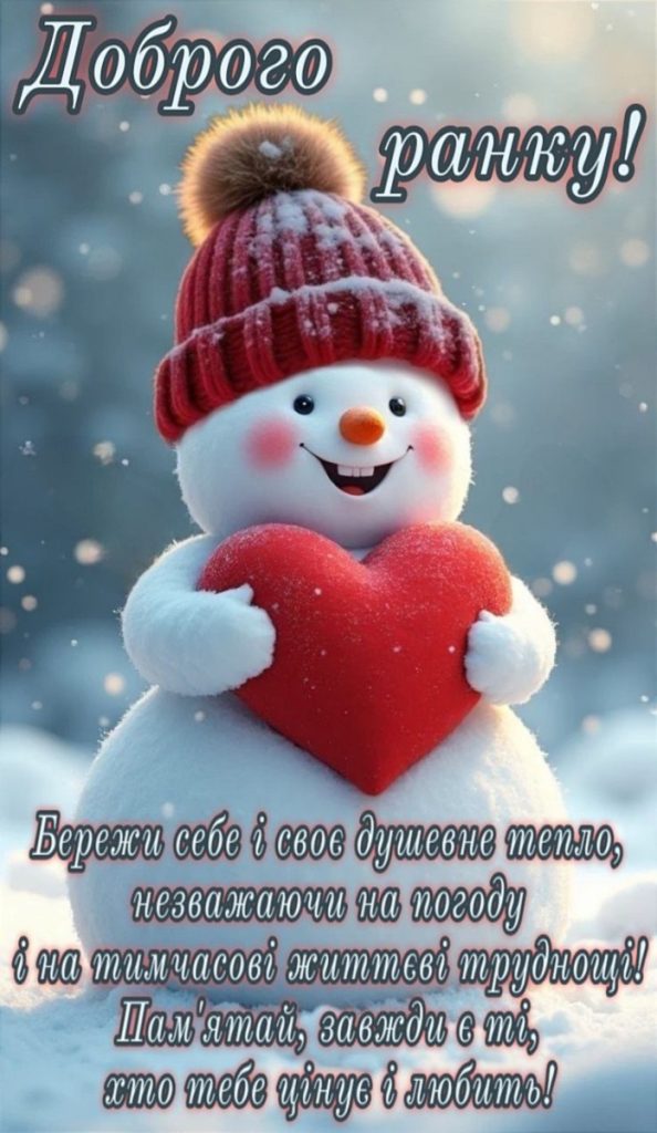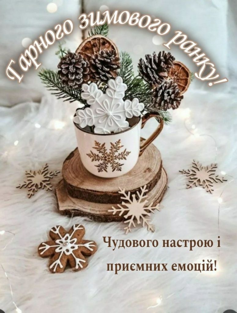 Нехай зимовий ранок огортає тебе м’яким світлом і спокоєм. Морозні візерунки на вікнах створюють настрій, а аромат теплого напою додає затишку. Нехай у цьому дні буде місце для натхнення, добрих думок і приємних зустрічей, що грітимуть сильніше за будь-яку ковдру.