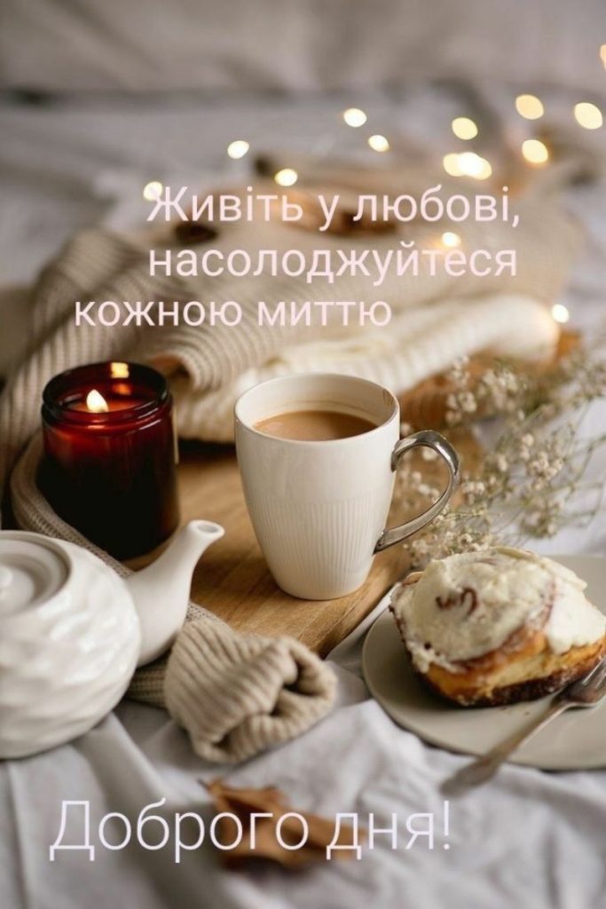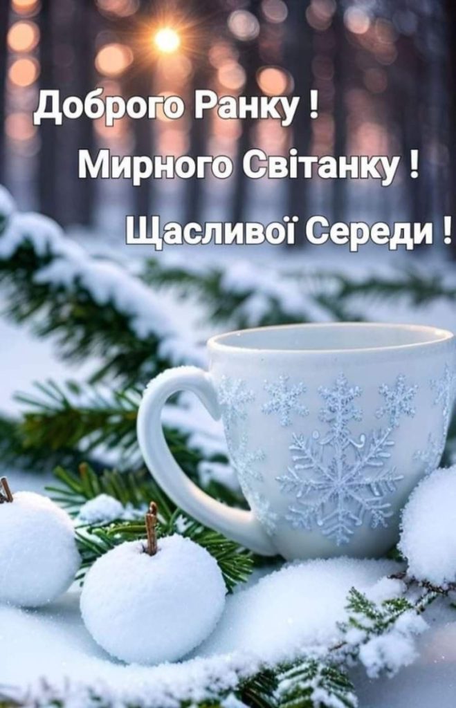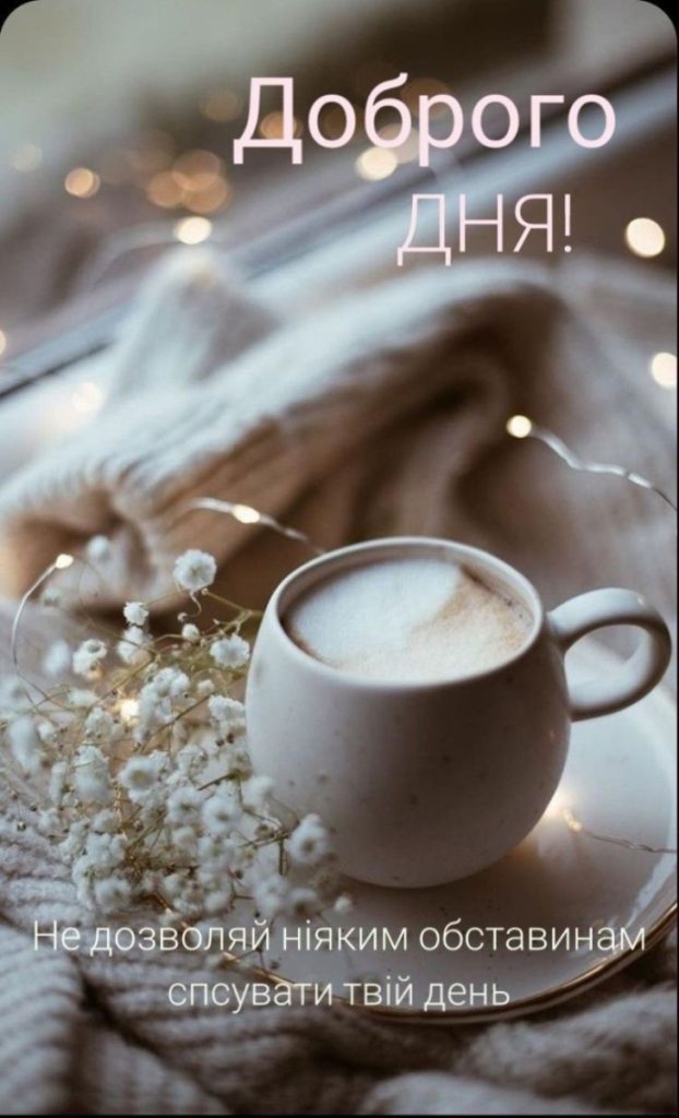 Хай зимова прохолода приносить ясність, а день наповнюється світлом. Нехай навколишня тиша допомагає зосередитись на приємному, а гарячий напій стає маленьким ритуалом радості. Нехай добрі думки супроводжують тебе до самого вечора.