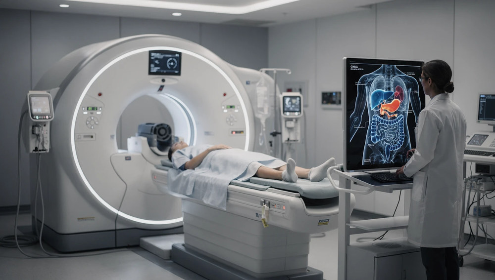 Окремо варто згадати про кишківник. Тонка кишка — один із найскладніших органів для обстеження: вона довга, звивиста, і більшість методів просто не дістають до неї. КТ кишківника — ентерографія — вирішує цю проблему: пацієнт випиває контрастний розчин, який заповнює кишку зсередини, і КТ показує її стінки, звуження, запалення або інші зміни у деталях.